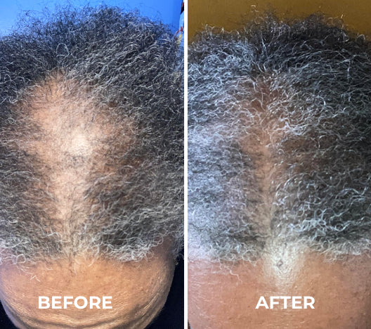En cambio, se dirige a la causa fundamental de la caída del cabello en las mujeres de raza negra y, al hacerlo, puede detener la caída del cabello y rellenar las zonas calvas vergonzosas y volver a hacer crecer los bordes adelgazados.