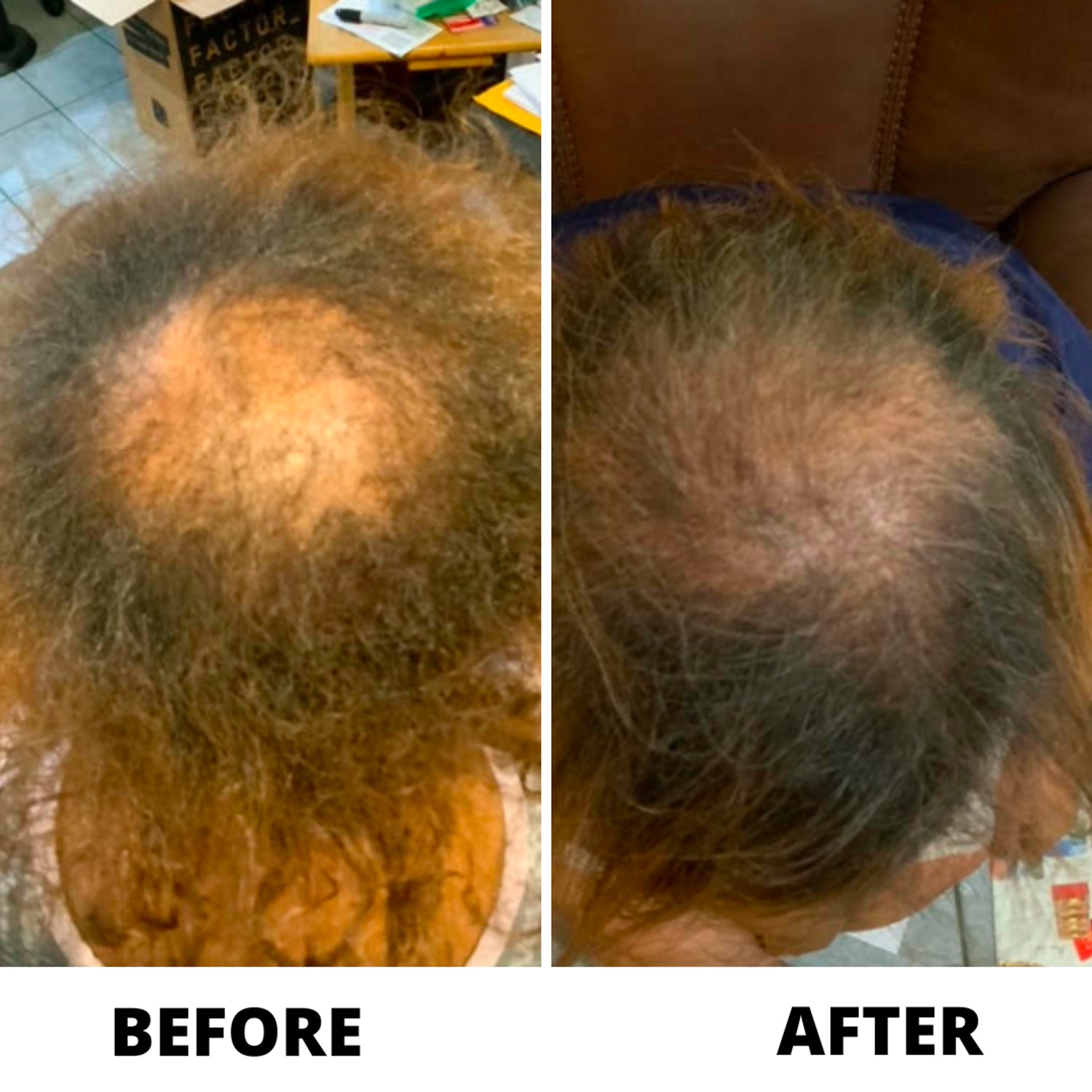 "El año pasado, perdí todo mi cabello debido a mis tratamientos contra el cáncer... Comencé a usar este remedio de restauración capilar hace apenas tres meses.