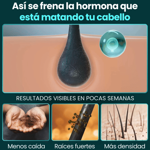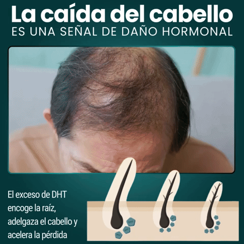 Cada cabello que se cae indica que el folículo se está debilitando. El exceso de DHT encoge la raíz, adelgaza el cabello y acelera la pérdida, provocando entradas visibles, menor densidad y un envejecimiento prematuro del rostro.