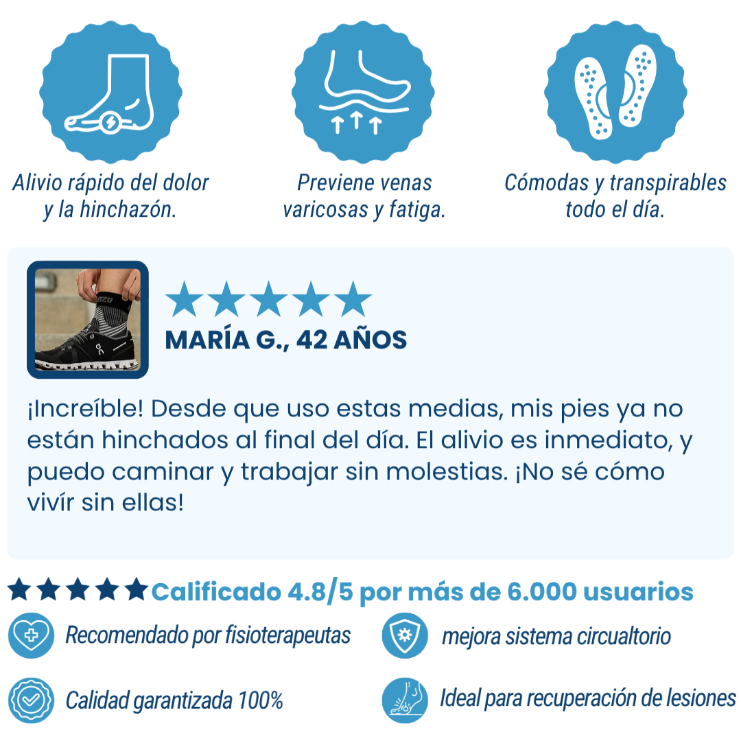 Perfectas para largas jornadas, viajes o actividades físicas.Alivio de dolor por trastornos en los pies, o mala circulación. ¡PRIORIZA TU SALUD!