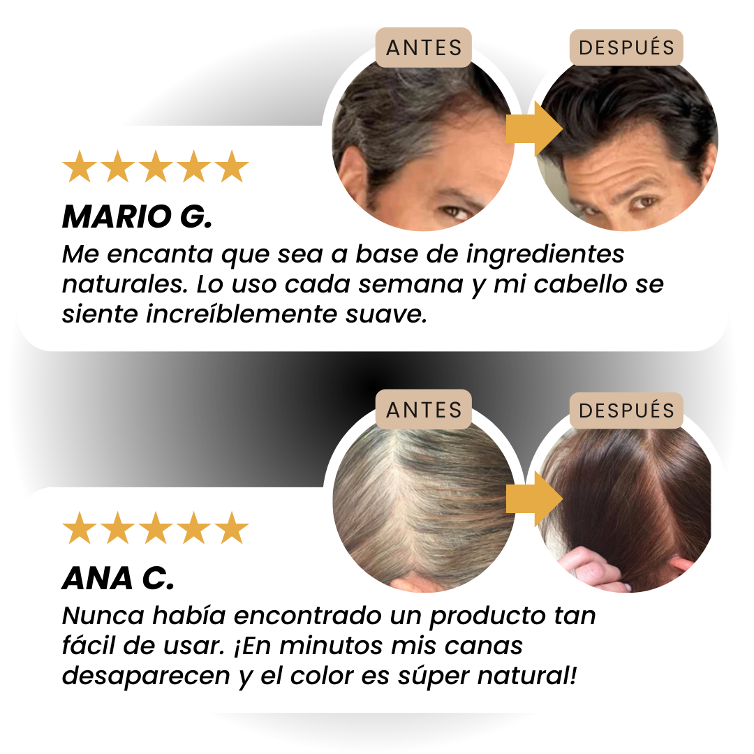 No solo cubres tus canas, sino que también proteges tu cuero cabelludo y mantienes tu cabello saludable con una fórmula suave, efectiva y hecha con ingredientes 100% herbales.