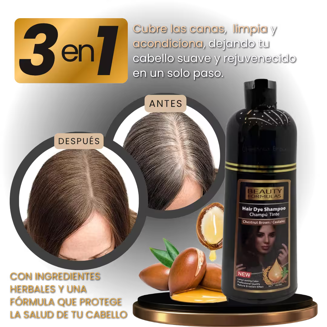 Este innovador shampoo cubre tus canas al instante sin químicos agresivos, protegiendo tu cabello y cuero cabelludo mientras lo nutre con ingredientes naturales como el aceite de argán.